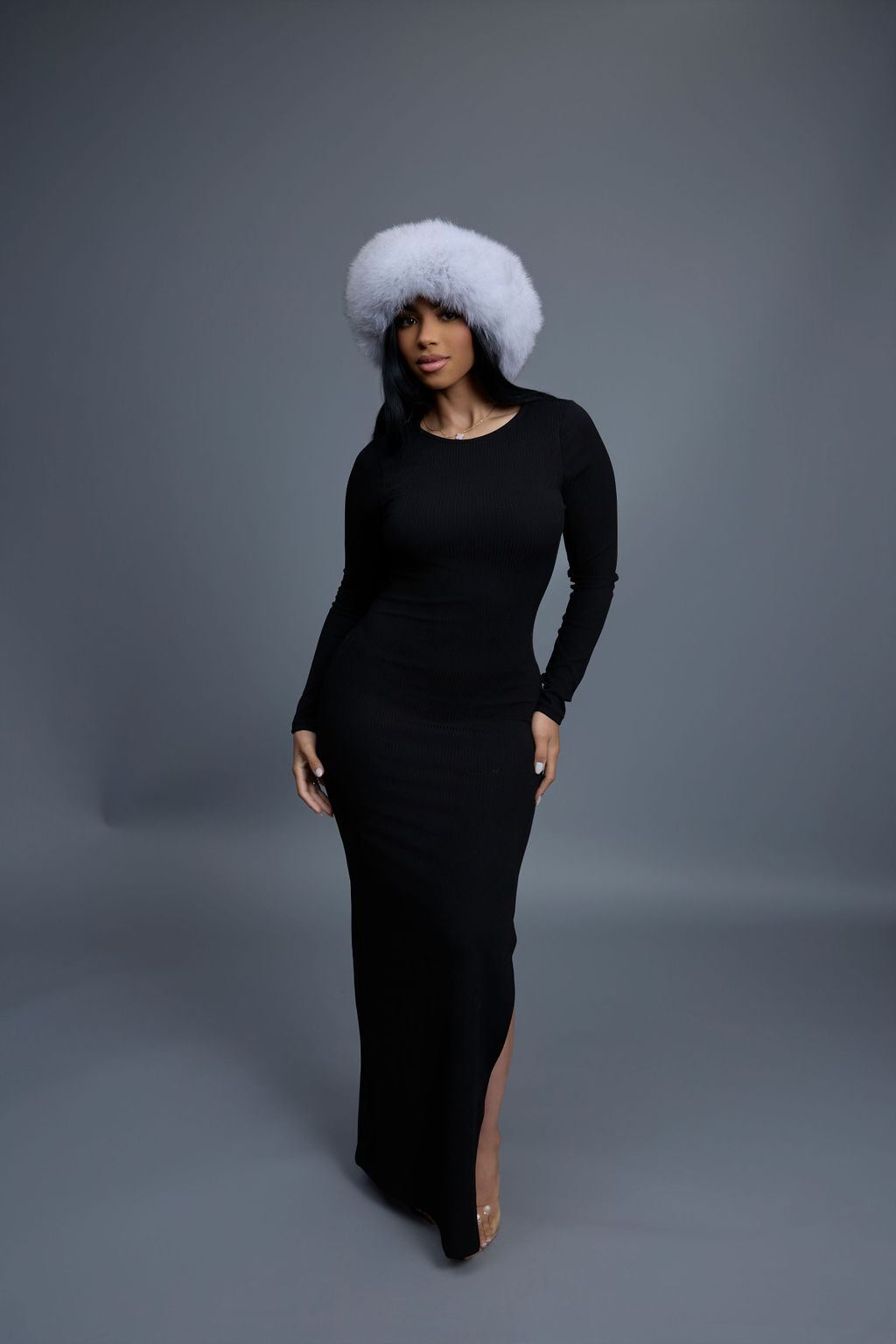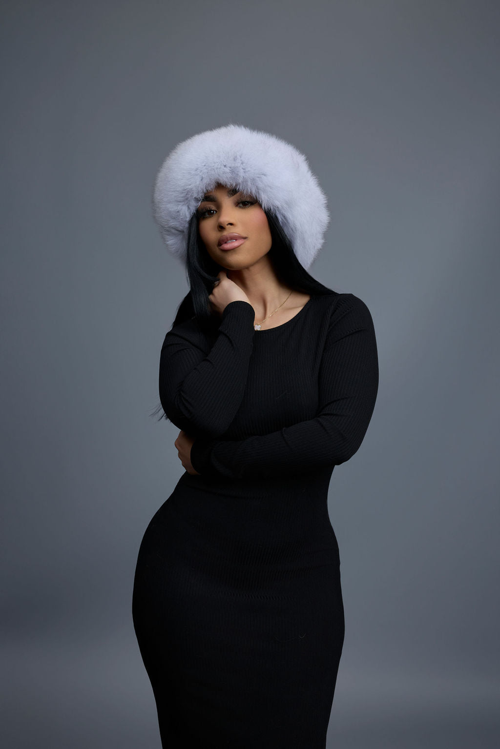Women's Natalia Leather And Fox Russian Hat [Black/White]