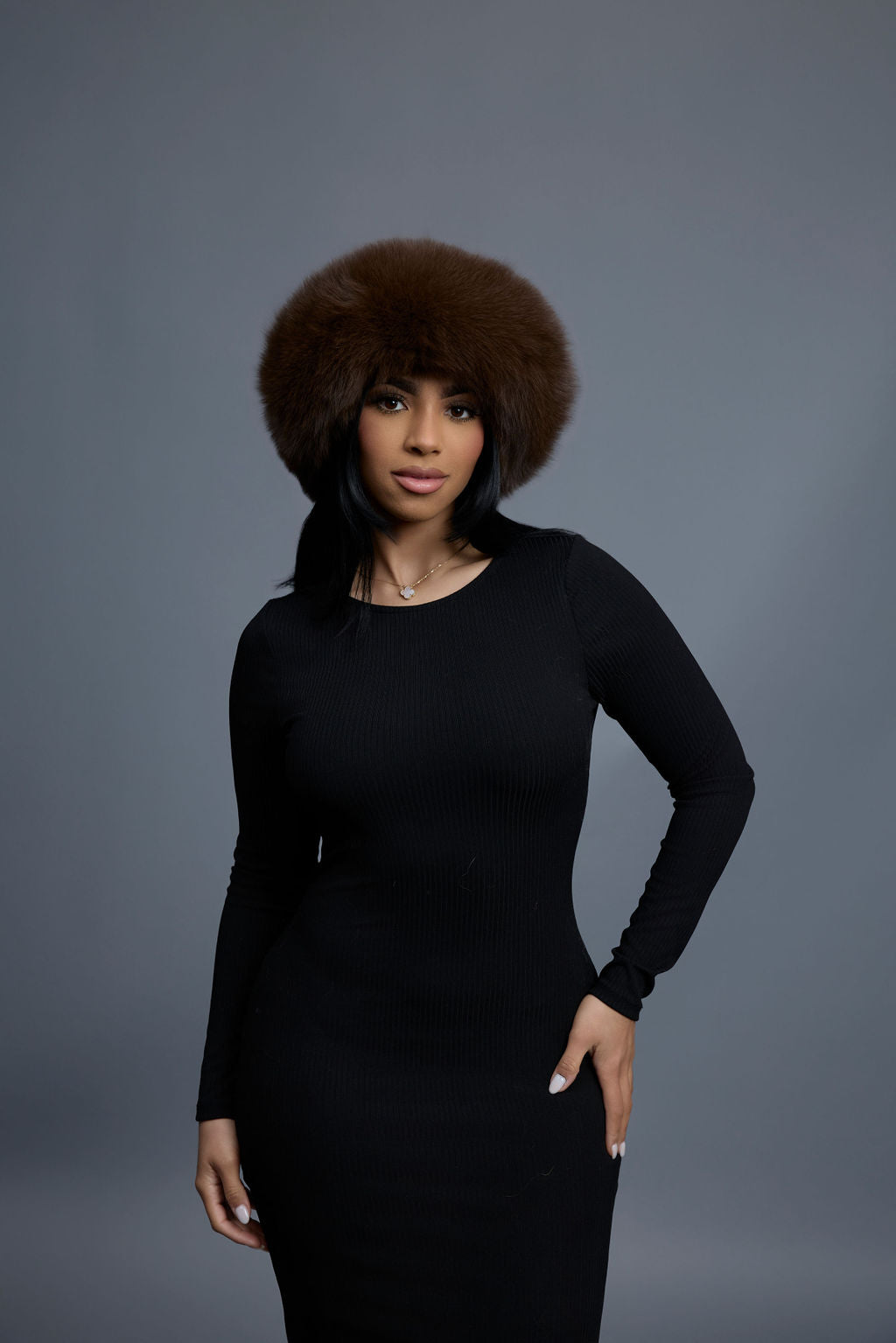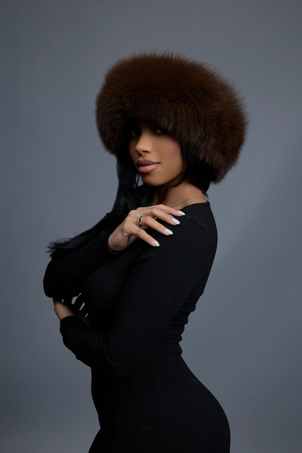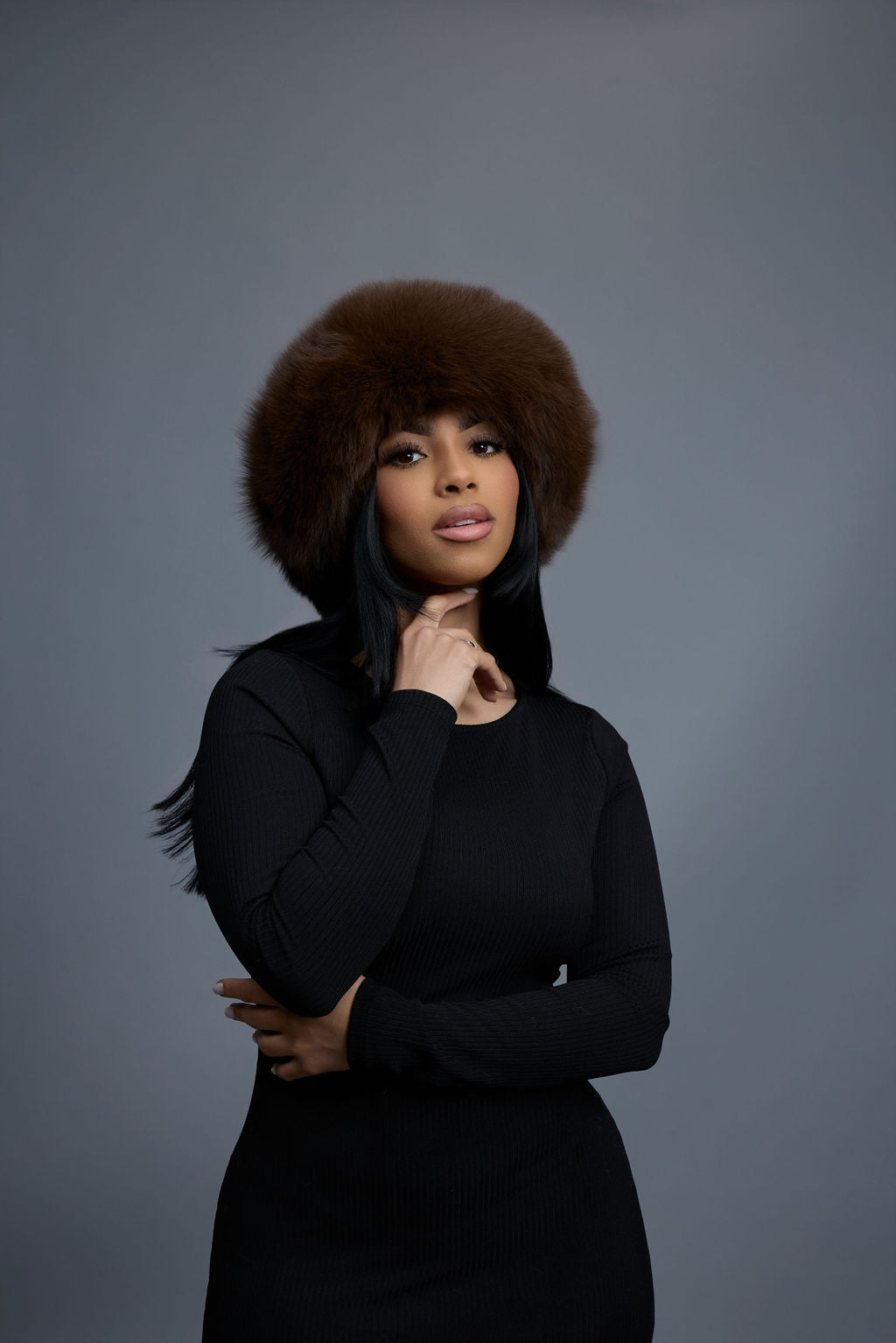 Women's Natalia Leather And Fox Russian Hat [Chocolate]